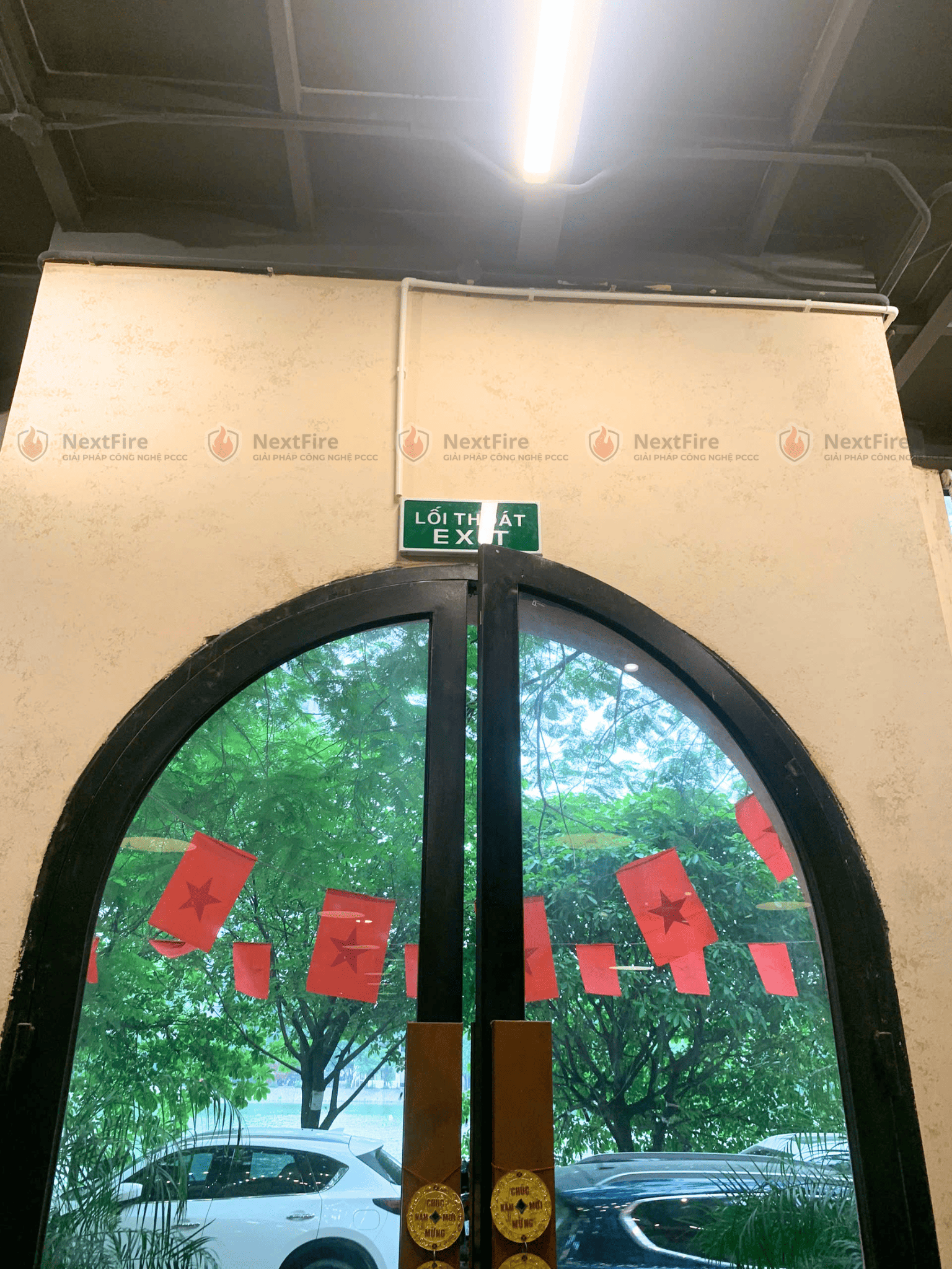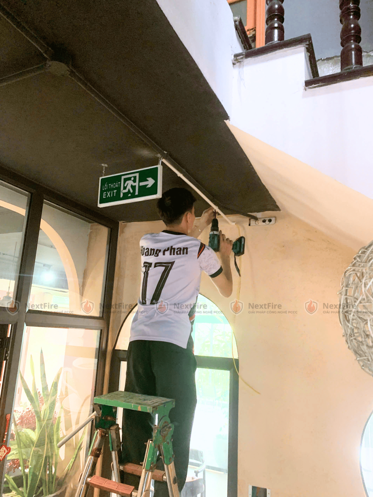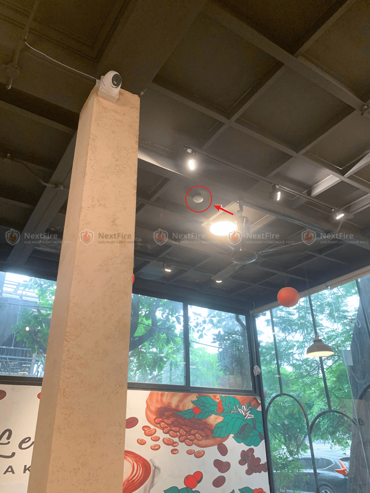 Theo nguyện vọng của chủ quán là chị Tuyết do quán cafe đã hoàn thiện nội thất nên chị không muốn đi dây phức tạp, không muốn khoan đục làm ảnh hưởng đến thẩm mỹ công trình, phá vỡ cấu trúc, phong cách decor của quán. Chị cần 1 giải pháp nhanh – gọn – đúng chuẩn. Vì thế, NextFire đưa ra giải pháp như sau: