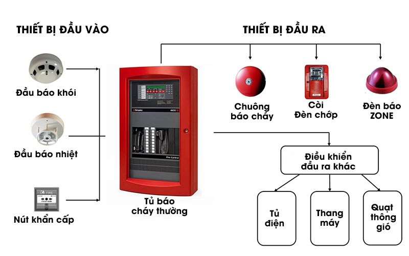 Một hệ thống báo cháy cơ bản thường bao gồm các bộ phận sau: