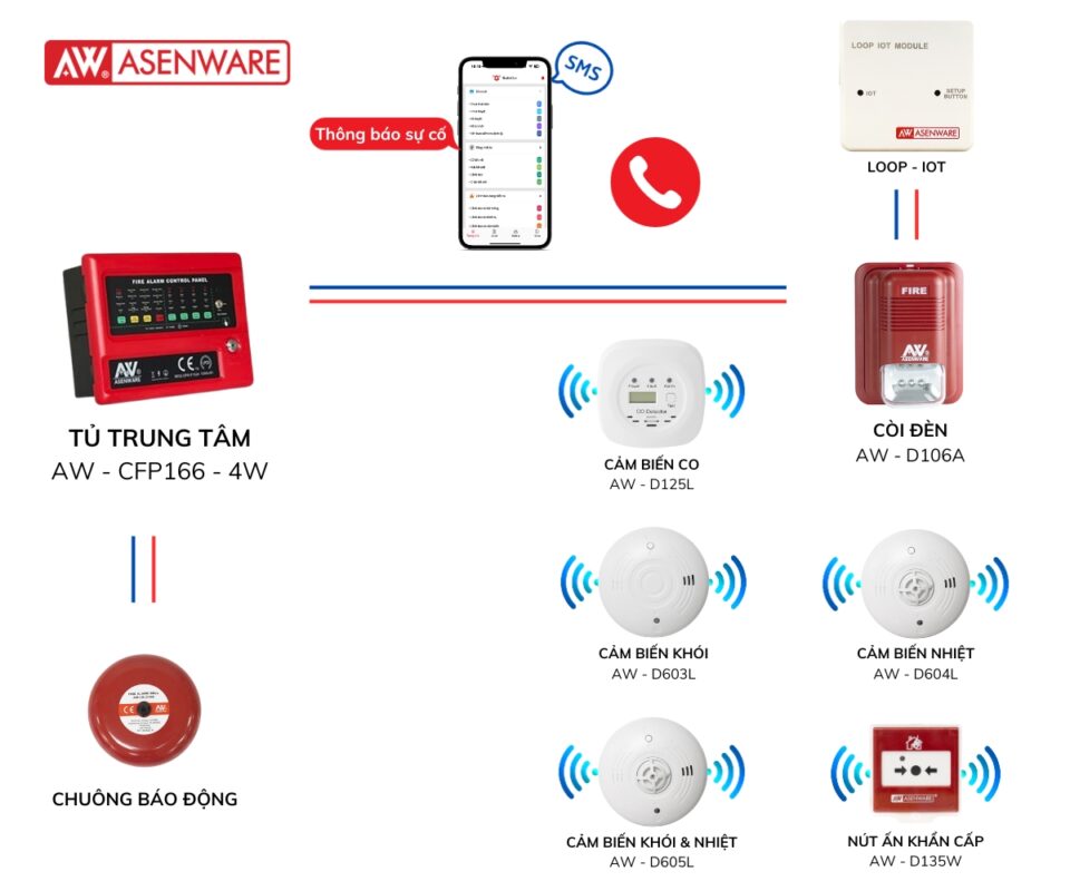 Thiết bị báo cháy là tập hợp các linh kiện, cảm biến và trung tâm điều khiển có nhiệm vụ phát hiện sớm dấu hiệu cháy (khói, nhiệt, khí CO…) và phát ra tín hiệu cảnh báo tại chỗ hoặc cảnh báo qua app điện thoại bằng âm thanh, ánh sáng hoặc truyền tín hiệu đến hệ thống quản lý để xử lý kịp thời.