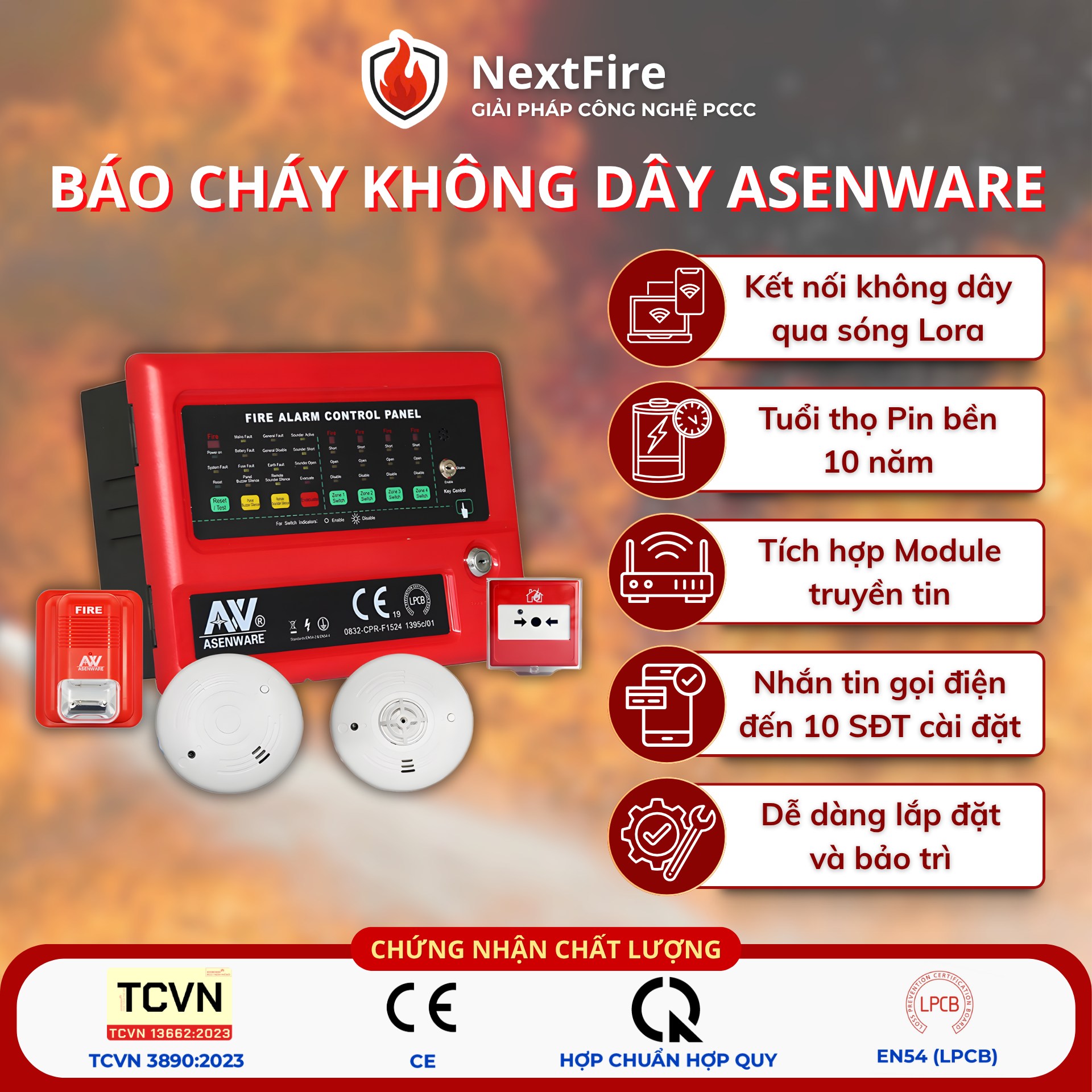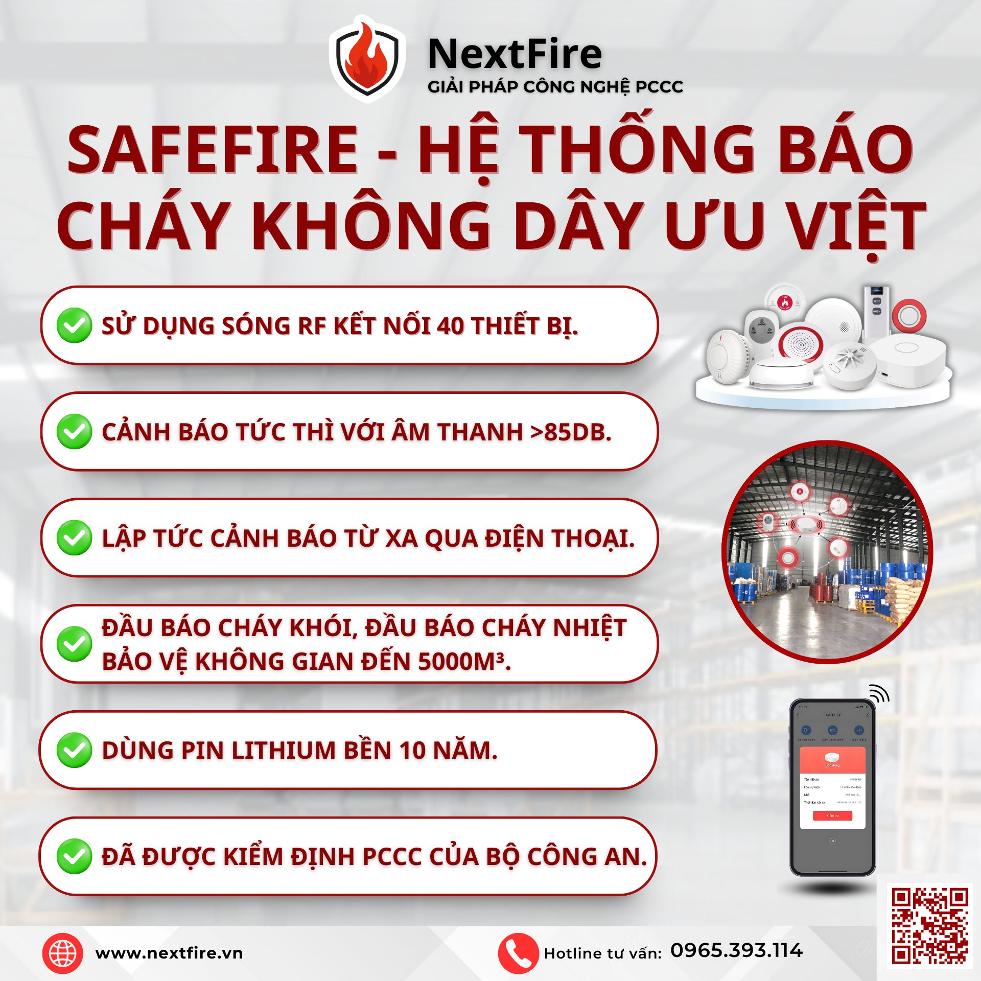 Bài viết trên, NextFire đã có những chia sẻ hữu ích về thiết bị báo cháy không dây chính hãng. Cháy nổ không báo trước cũng không xác định thời điểm. Nhưng anh/chị có thể chủ động bằng cách lắp đặt báo cháy sớm, đúng – chuẩn ngay từ đầu, phòng ngừa rủi ro. Liên hệ NextFire để được Tư vấn miễn phí 1:1 • 🏠 Khảo sát tận nơi • 🔥 Hoàn thiện PCCC – An tâm vận hành – Đúng quy định.